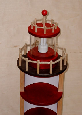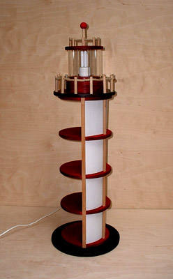 Ein schöner Leuchtturm, der Platz hat für die kleinen Dinge, wie z.B. CD's und Kasetten. Die Stehlampe hat ein angenehmes gedämpftes Licht.