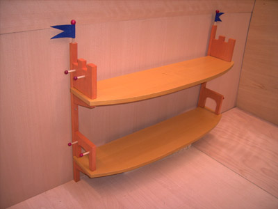 Ein schönes großes Bücherregal, speziell geschaffen für die fantasievolle Wohnwelt der Kinder. Regalbretter unten breiter als die beiden oberen.