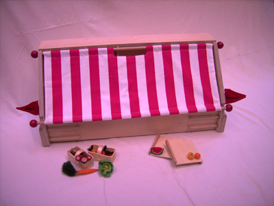 Ein kleiner und kompakter Kaufladen, der viele spielerische Elemente bietet, wie z.B. die traditionelle Markise zum Öffnen des Ladens sowie das Aufstellen von Markthilfen.